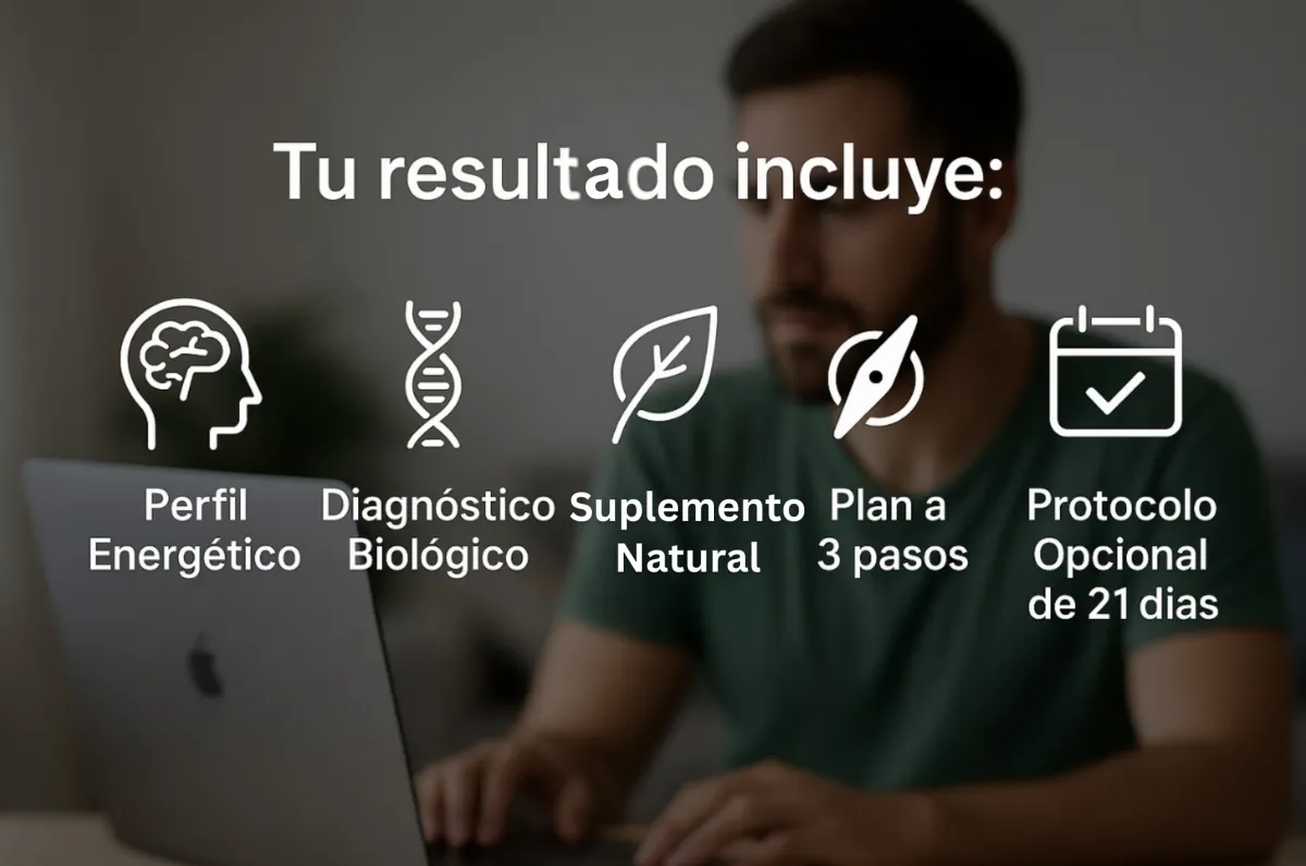Este no es un test genérico. Está diseñado con base en biohacks, fisiología y experiencia real con cientos de clientes. Y lo mejor: se adapta a tu contexto actual, no a etiquetas vacías.